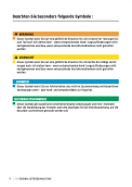 Dieses Symbol weist Sie auf eine gefährliche Situation hin, die schwere Ver- letzungen bis zum Tod nach sich ziehen kann – wenn entsprechenden Hand- lungsaufforderungen nicht nachgekommen wird bzw. wenn entsprechende Vorsichtsmaßnahmen nicht getroffen werden.