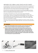 Machen Sie nach jeder Anpassung/Montage unbedingt den Kurzcheck im Kapitel „Prüfungen vor jeder Fahrt“ und probieren Sie Ihr URBAN JUNGLE-Bike in Ruhe abseits des Straßenverkehrs aus (f).